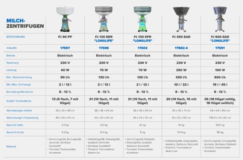 Milchzentrifuge FJ 600 EAR „LONGLIFE“ – 230V/50Hz
