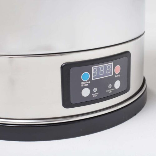 Stellen Sie einfach die Wassertemperatur (bis max. 99°C) je nach gewünschtem Endprodukt, und separat die gewünschte Pasteurisations- bzw. Produktionszeit auf der elektronischen Steuerung ein. Durch ein 2,8 kW Heizelement wird z.B. Ihre Milch in ca. 1 ¼ Stunden von 4°C auf max 90°C erhitzt, was ungewollten Bakterien keine Chance lässt. Die auf der Elektronik eingestellte Temperatur zeigt die Wassertemperatur und nicht die Mediumtemperatur. Mit einem zusätzlichen Thermometer kontrollieren Sie die Temperatur des Mediums. Einfach und schnell.